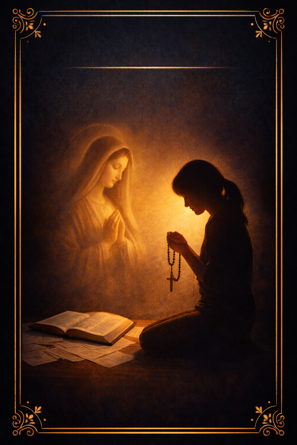 Queremos que sientas su protección real cada segundo. Por eso, si eres una de las primeras 10 personas en adquirir el devocional hoy, te enviaremos una imagen física de la Virgen María para que la coloques en el corazón de tu casa.